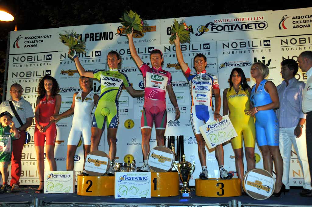 Festa grande ieri sera per i circa ventimila appassionati e sportivi che hanno affollato l’elegante ed ospitale lungolago di Arona per il GP Formaggi Guffanti, Coppa Fontaneto Ravioli al quale hanno partecipato ben 31 corridori professionisti fra i quali alcuni fra i migliori protagonisti del Giro d’Italia appena concluso. Sia la gara ad eliminazione, vinta da Ivan Basso davanti Alessandro Petacchi e Leonardo Bertagnolli, che la gara scratch, vinta da Danilo Di Luca nei confronti di Franco Pellizotti e Gilberto Simoni, hanno suscitato un fortissimo entusiasmo e la gioia di tutti in una giornata molto particolare; la Festa della Repubblica che ad Arona ha assunto i toni di forte solidarietà nei confronti della popolazione abruzzese, colpita dal terremoto: “A Danilo Di Luca abbiamo consegnato una bicicletta da bambino per le popolazioni d’Abruzzo – ha dichiarato il presidente dell’AC Arona Giorgio Sinigaglia – ma altre sessanta le porteremo nei prossimi giorni direttamente nelle zone interessate dal terremoto”. “Non solo – ha continuato Antonio Bertinotti – ieri sera abbiamo acquistato 500 braccialetti “abruzziamo” e li abbiamo donati al pubblico. Abbiamo ospitato due giovani universitari di l’Aquila che hanno potuto verificare il grande amore che c’è per la loro terra. Ma abbiamo festeggiato anche la Festa della Repubblica con 1500 bandierine e con i coriandoli tricolori. E’ stata una bella festa con i corridori a far da cornice alla grande passione popolare che suscita sempre il nostro sport”
