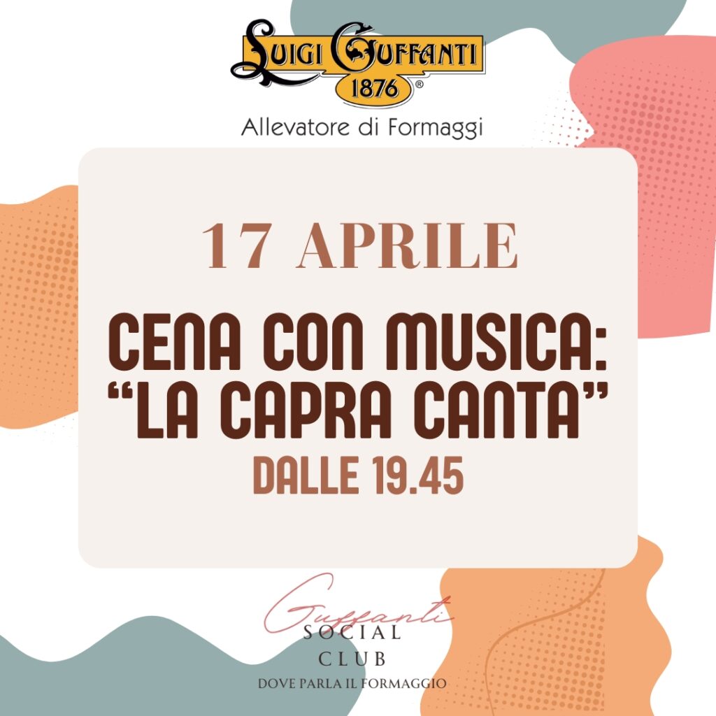 Mercoledì 17 aprile, vi invitiamo a deliziare il vostro palato con una cena esclusiva, interamente dedicata ai formaggi prelibati delle rinomate Cantine Guffanti.